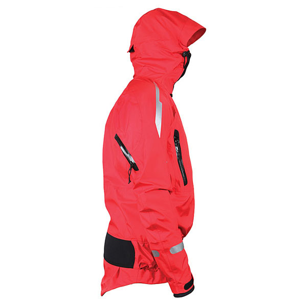 A paddle jacket made for expedition sea-kayaking, made of 4-layer material AirFour. Breathable and with great watertight qualities. It’s designed to allow free range of motion. The jacket has an inner neoprene neck that closes by pulling the zipper all the way up. The hood fits comfortably around your face and is fitted with 3D adjustment system (horizontal, vertical and around the face).The chin area of the hood is made of soft neoprene material and has vents for breathing. Long front zipper with taping is slightly off-centre to avoid rubbing on sensitive chin area and allows closure all the way to your nose. Double wrist cuffs are made of extremely flexible neoprene with Velcro outer cuffs. Double waist maximizes water tightness of the jacket. CONQUEST has two pockets in front, a larger one accessible from the outside with a taped zipper and a smaller one on the inside.