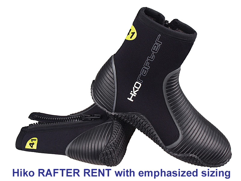 Hiko RAFTER are versatile, high-cut boots great for white water kayaking, rafting, SUP, or any other paddle sports as well as diving. Thick but pliable soles offer good protection when walking on gravel or even sharp rock. The heels and toes have additional rubber vulcanized on to the material for your foot protection. 3mm plush neoprene will keep your feet warm in cold water. Rafter boots have a durable zipper on the inner side.