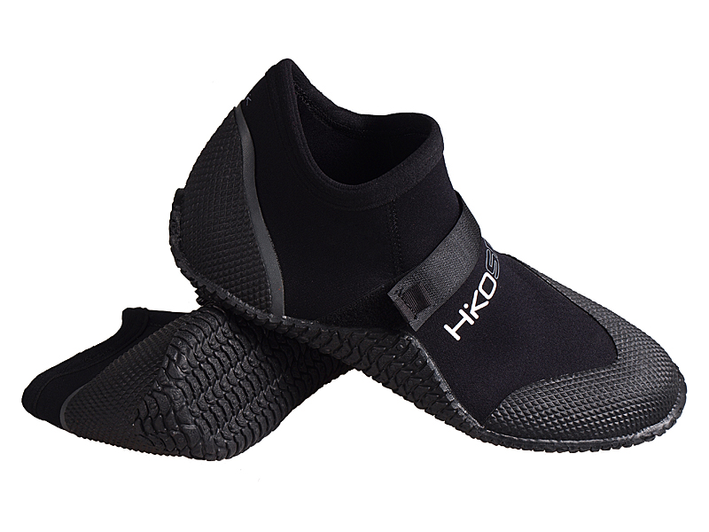 These neoprene sneakers made of 3.0 mm neoprene are super easy to slip on and very comfortable to wear in your kayak. The thick but pliable sole offers good protection when walking on gravel or even sharp rocks. The heels and toes have additional rubber vulcanized on to the material for your foot protection. A Velcro strap secures the shoe on your foot.