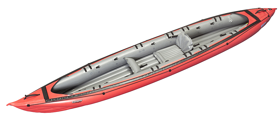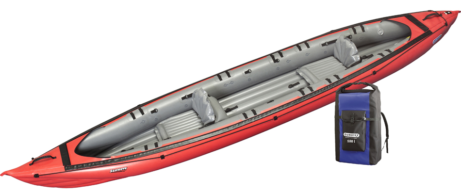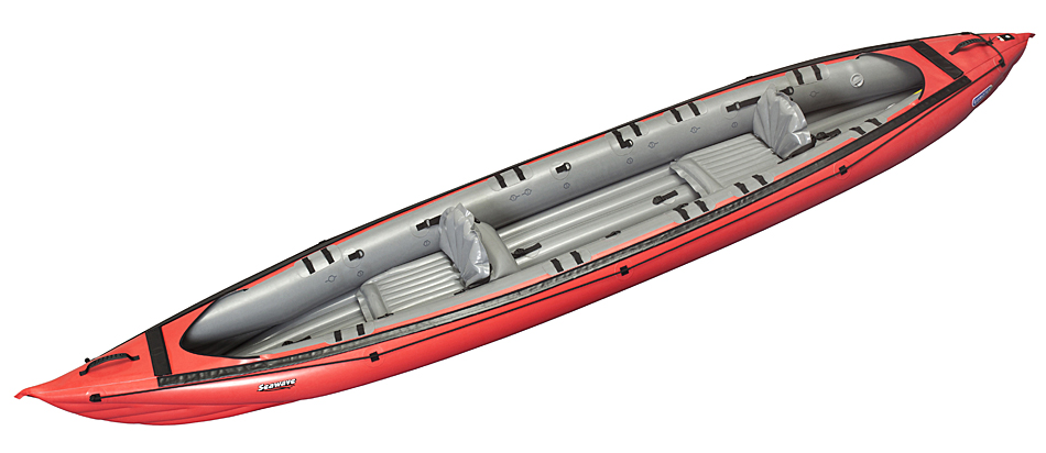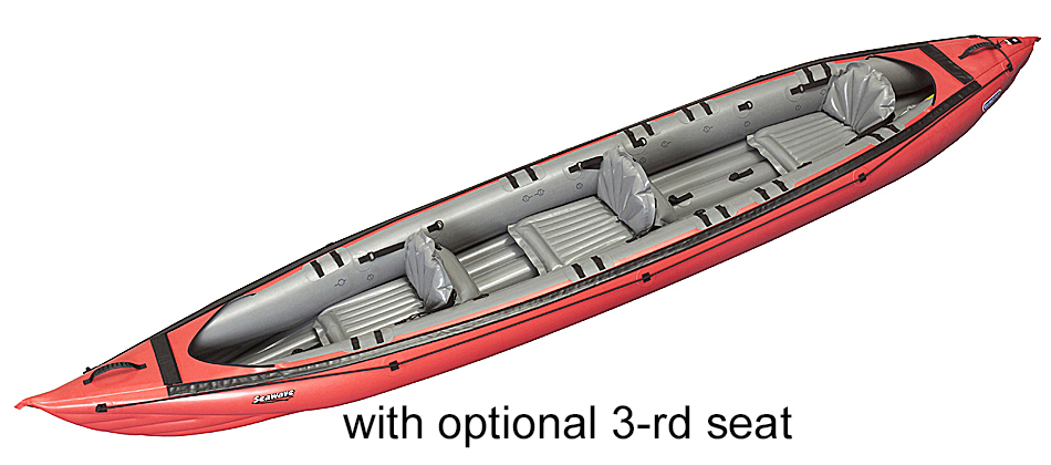 Now, if you need one kayak that will do it all do not go any further. Seawave is the answer for you. Seawave is supplied as a sit-on top kayak with two inflatable seats. The seats can be installed in three different arrangements to make the kayak either a single seater, a two seater with plenty of leg room for both paddlers or (with an optional third seat) a family three seater for two adults and a child in the middle.