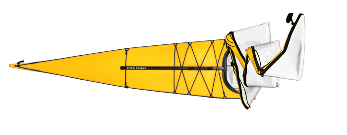 TRAK 2.0 is a state-of-the-art piece of gear that you will love! It is built on the same principles as the original Inuit kayaks thousands of years ago - skin stretched over a frame - but built using 21st century technology and materials. The frame made of bones is replaced with aircraft aluminium pipes and the seal skin with a synthetic (PES) cloth coated with Polyurethane - the best material available for durability and abrasion resistance.