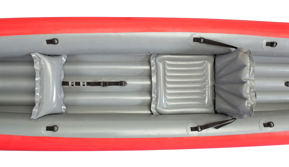 two inflatable seats with back rest • two adjustable foot rests • plastic moulded carry handles • pump • 70l dry bag / backpack • skeg (tracking fin) • repair kit • owner’s manual.