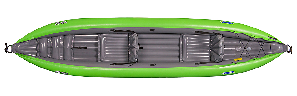 two inflatable seats • one adjustable foot rest • elastic rope on stern for gear stowage • pump • carry bag • skeg (tracking fin) • repair kit • owner’s manual.
