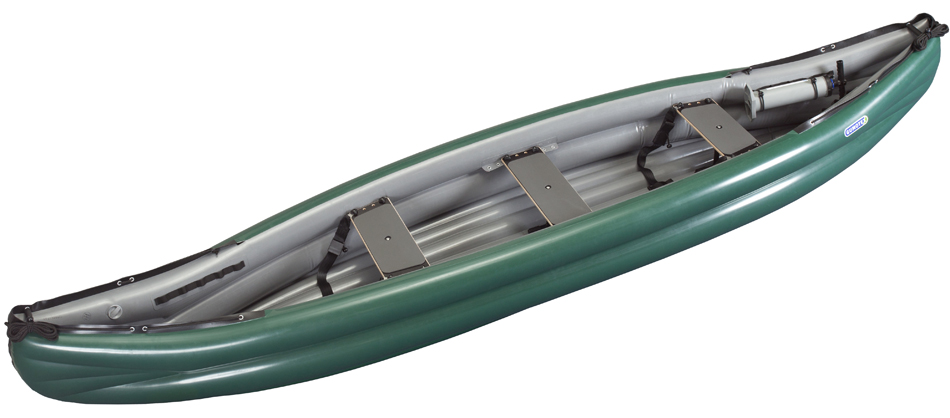 Inflatable traditional-style canoe with self-bailing floor and huge storage – second to none for multiday river trips.
