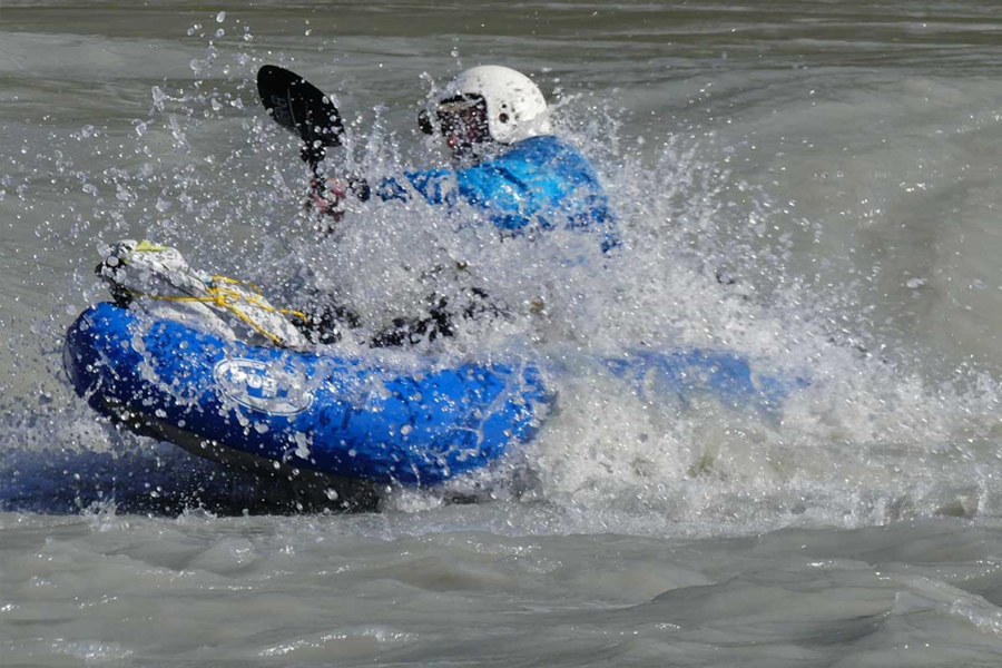Expert kayakers will enjoy the packraft rigid hull and responsive behaviour.